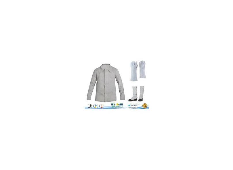 Kit Soldador Jaleco Blusão Raspa + Luva Térmica + Perneira