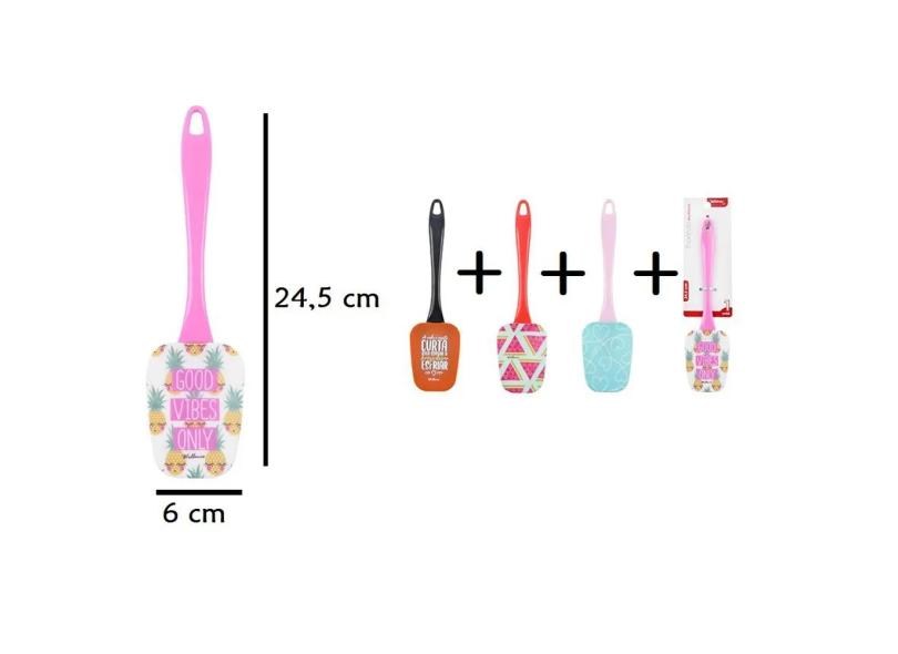 Kit com 4 Espátula Multiuso de Silicone Decorada Cabo Acrílico Colorido 24 cm