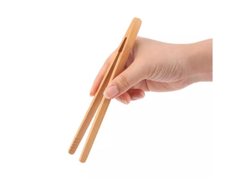 Pinça Pegador De Fritura Alimentos Salada Multiuso Em Bambu