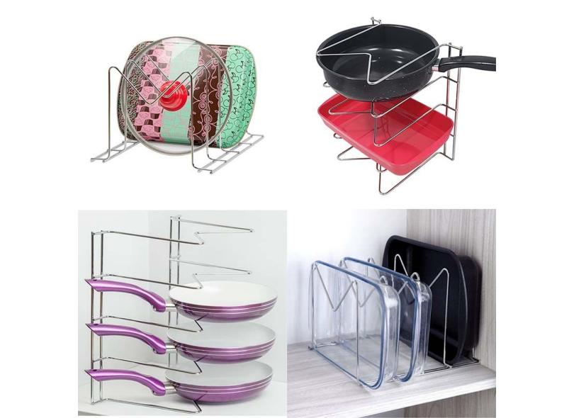 Suporte Organizador de Panelas Tampas Travessas Aço Cromado