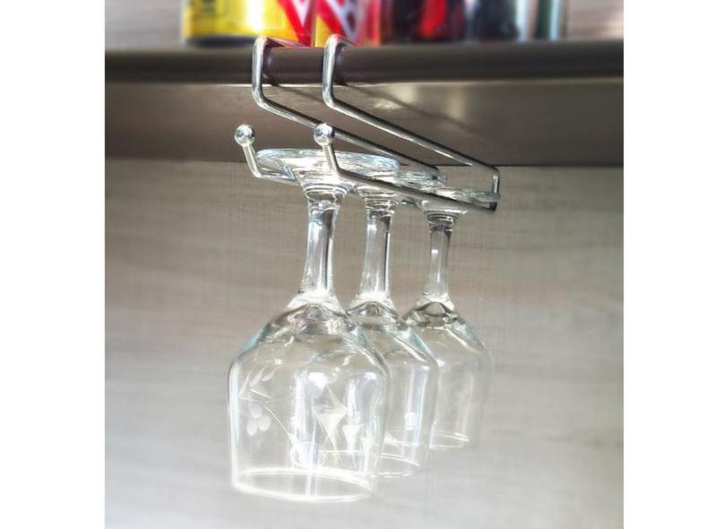 Suporte Porta Taças De Encaixe Simples Cromado Armário