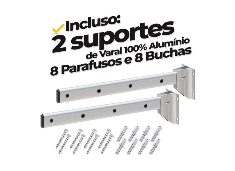 Varal Roupa Alumínio Dobrável Parede Muro Suporte C/parafuso
