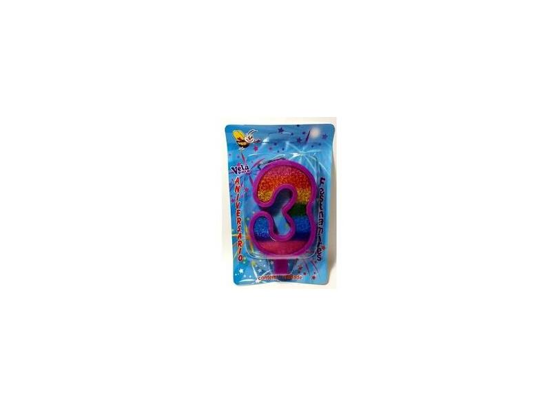 Vela Aniversário Arco Íris Número 3 - 01 unid