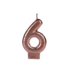 Vela Aniversário Cintilante Glitter Rosé Gold Número 6