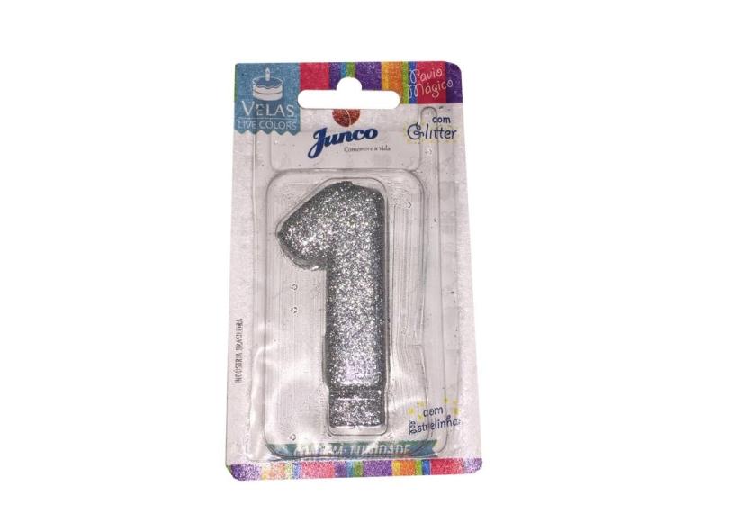 Vela Aniversário Glitter N 1 Prata Junco