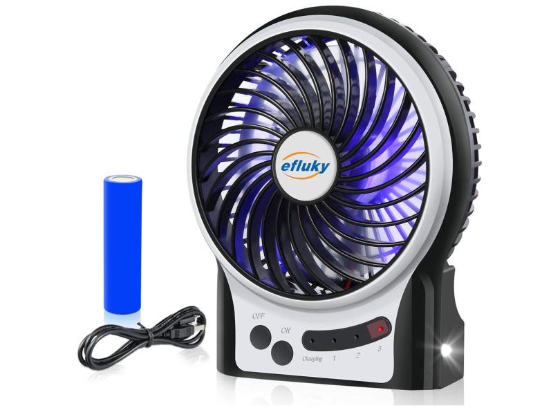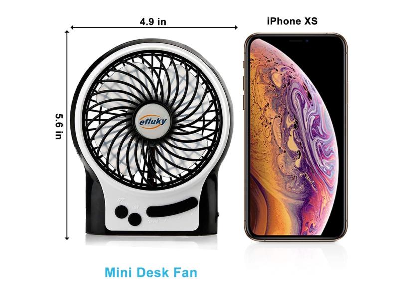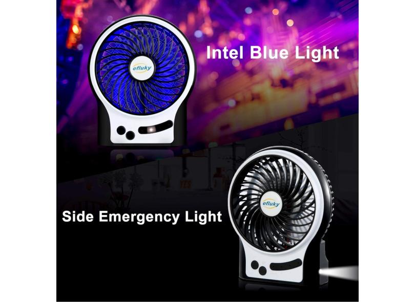 Efluky 3 velocidades Mini Desk Fan, Ventilador Recarregável Operado por Bateria com Luz LED e Bateria de 2200mAh, Ventilador USB portátil Silencioso para Casa, Escritório, Viagens, Camping, Outdoor, Fã Interior, 4,9 Polegadas,