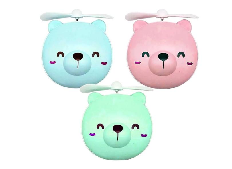 Mini Espelho Portatil com Led Ventilador Ursinho Usb