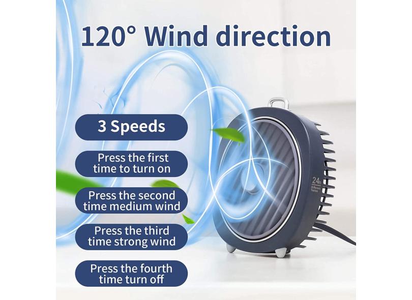 Ventilador de mesa USB de sowmow Pequeno, mas Poderoso Portátil Silencioso 3 Velocidades Vento e 2 Níveis de Iluminação Desktop Personal Fan Máscara Rotativa Mini Ventilador para Veículos home office Viagens ao ar livre (Marinha)