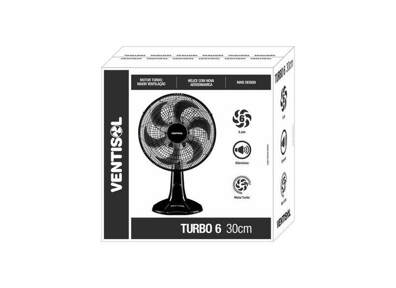 Ventilador De Mesa Ventisol 30cm Turbo Economy 6 Pás Preto