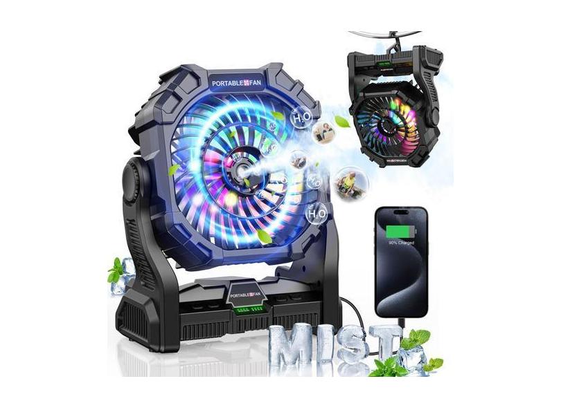 Ventilador de nebulização DOWILLDO Portable 12000mAh com luz RGB 200mL
