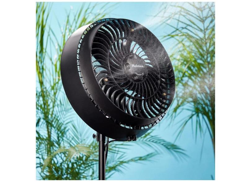 Ventilador de Nebulização Externa com Conexão de Mangueira, 3 Velocidades, 3 Níveis Névoa, Oscilação 80 e Altura Ajustável, 110V, HOLMES, Preto
