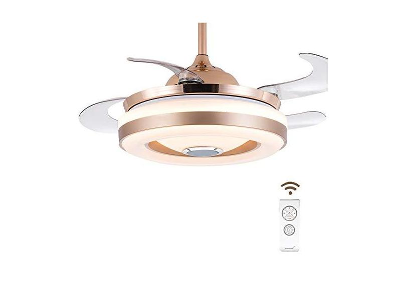 Ventilador de teto com alto-falante Bluetooth moderno LED luz de ventilador invisível com controle remoto lâmpada de teto musical para quarto lustre de ventilador de sala de estar, DualContr