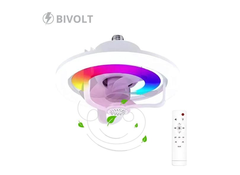 Ventilador de Teto com Luminária LED Giratória e Luz rgb