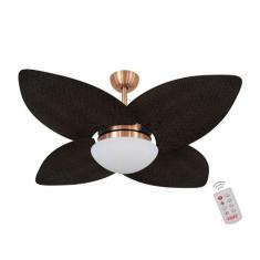 Ventilador De Teto Kovalski Cobre 4 Pás Palmae Tabaco 220V Com Control