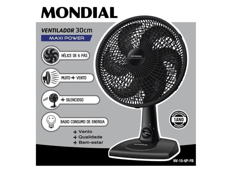 Ventilador Mondial 30cm 6 Pás Preto 220v NV15