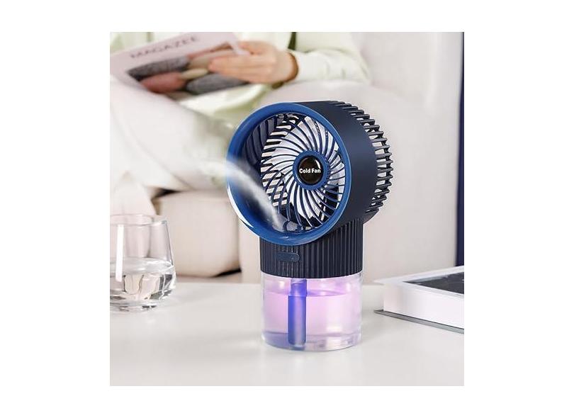 Ventilador portátil de ar condicionado, mini ventilador de spray nanômetro de 350 ml com 3 velocidades de vento, ventilador de resfriamento silencioso pessoal com luzes noturnas coloridas para