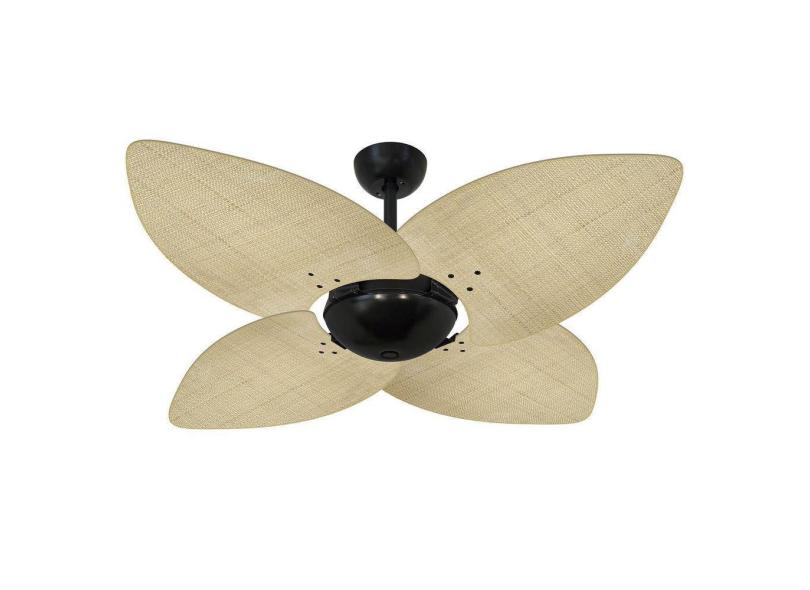 Ventilador Teto Office Dunamis Preto 4P Rattan Natural 110V