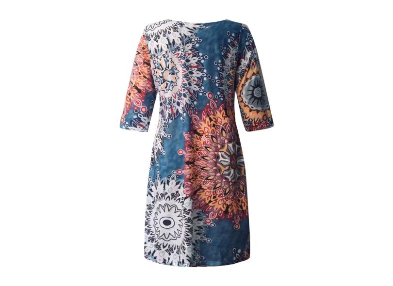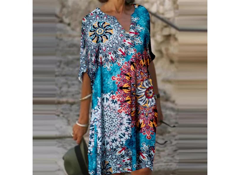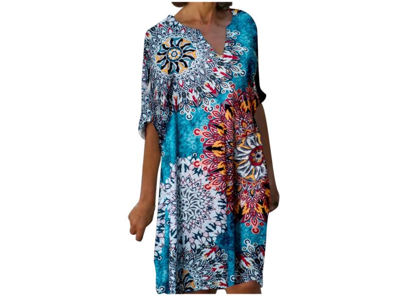 Hobby Moda feminina casual meia manga decote em V estampado feminino vestido longo solto