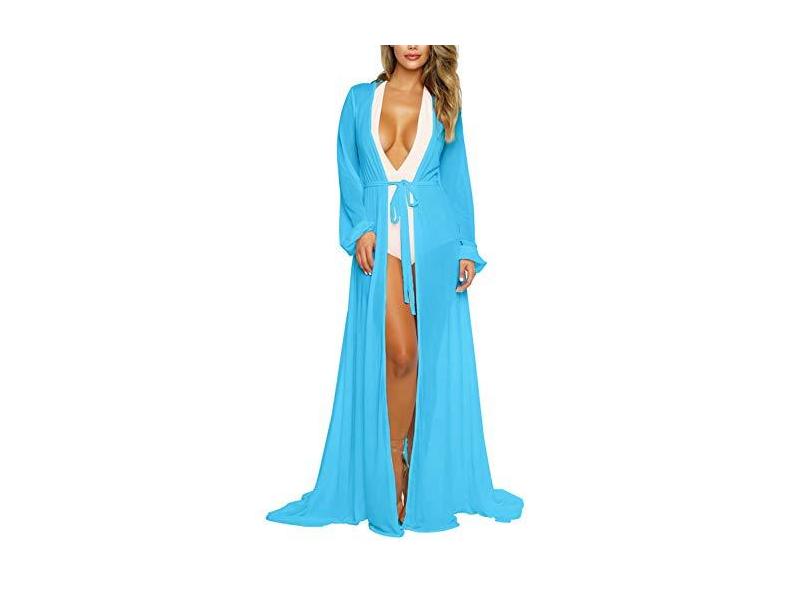 KAKALOT maiô feminino sexy de malha de manga comprida saída de praia saída de praia vestido maxi longo, , Small