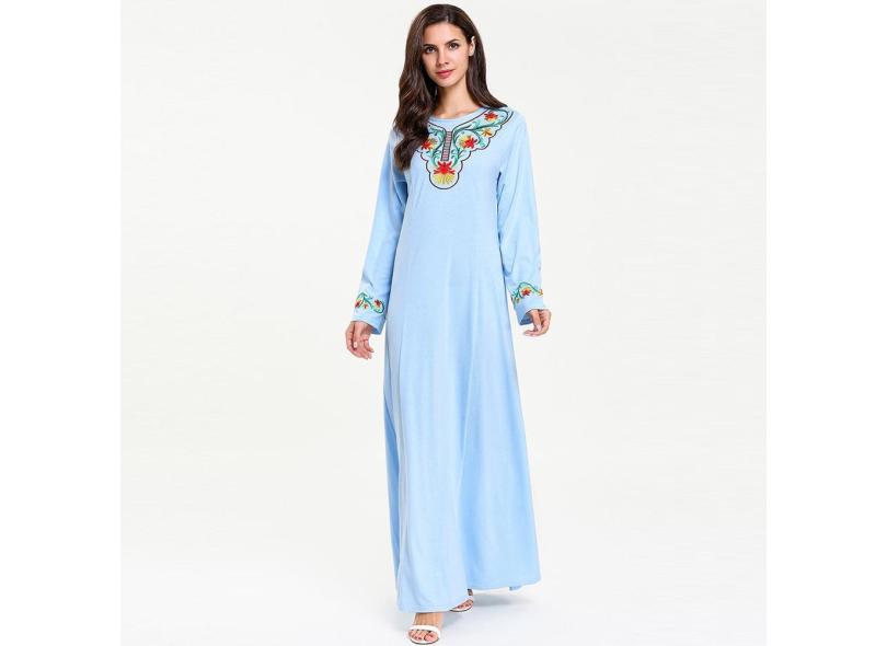 Manto longo vestido maxi feminino muçulmano bordado Abaya Islamic Dubai Kaftan Ramadan