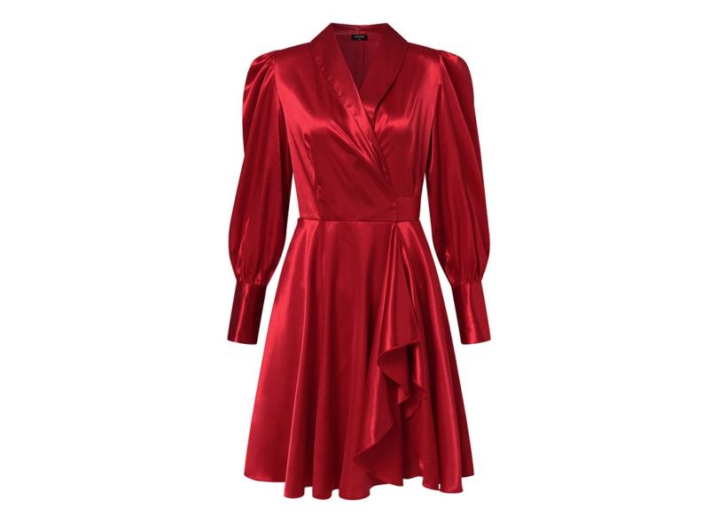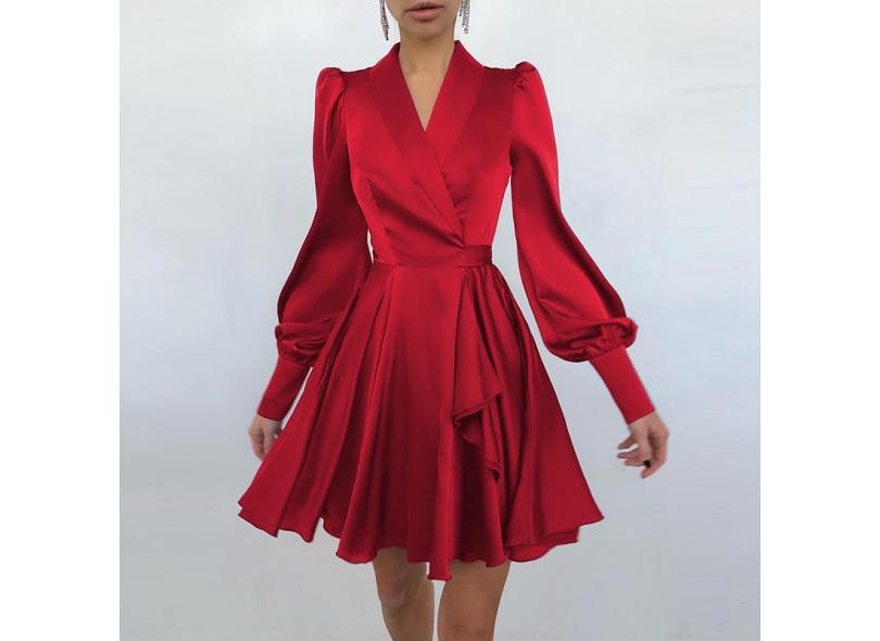 Minivestido vonda 3 cores feminino manga bufante decote em V pregueado em linha A minivestido elegante de seda de cetim para festa vestido de festa plus size Kleid 3XL