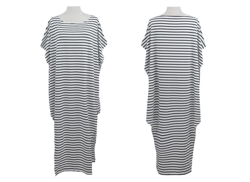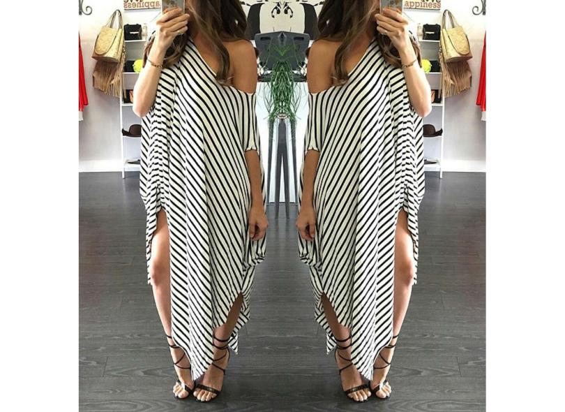 New Loose Women vestido longo listrado Batwing luva Off-ombro Dividir Asymmetric Casual Maxi Vestido Plus Size