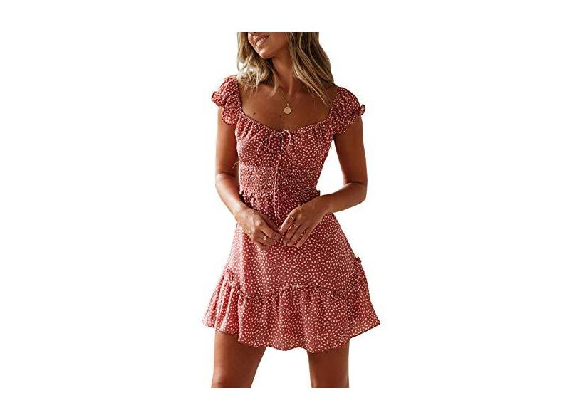 Valphsio vestido curto feminino franzido com babados floral amarrado na frente Boho vestidos curtos, , XX-Large