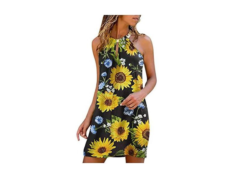 Vestido casual feminino para o verão, casual, sem mangas, midi, vestido frente única, vestido de sol, para praia, festa de casamento, B - , XXG