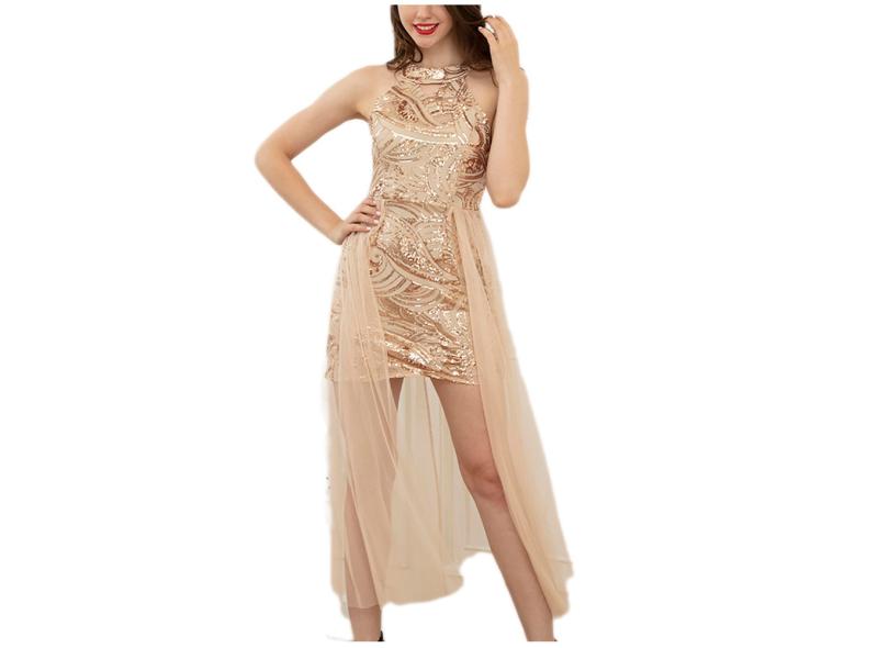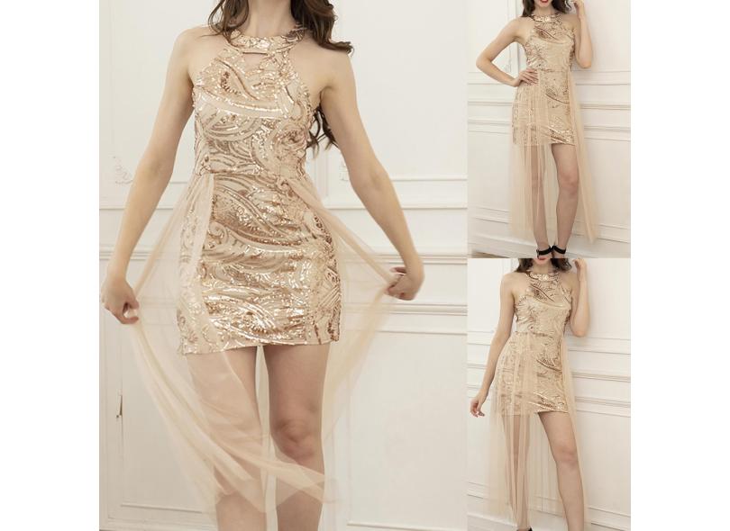 Vestido feminino cabresto pescoço malha com costura grande vestido de lantejoulas