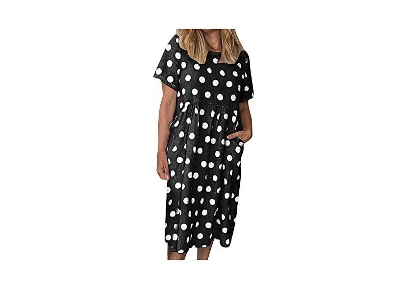 Vestido feminino casual de primavera, manga curta, evasê, comprimento até o joelho, vestido de verão, , XXG