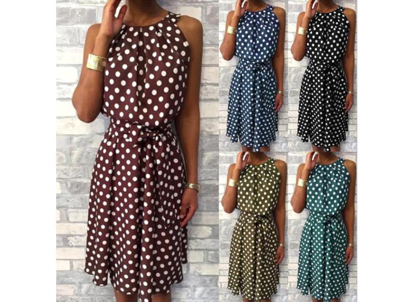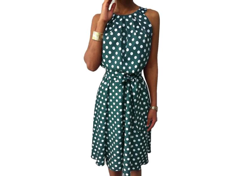Vestido feminino de bolinhas sem mangas fora do ombro redondo pescoço casual solto