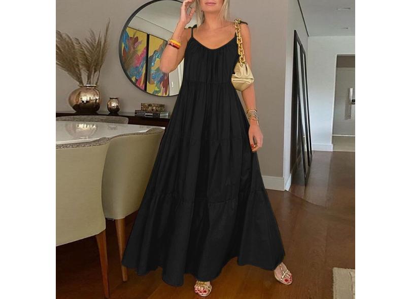 Vestido feminino maxi sem mangas de verão vestido de verão solto casual festa de férias vestido longo com baloiço plissado tamanho plus size 3XL
