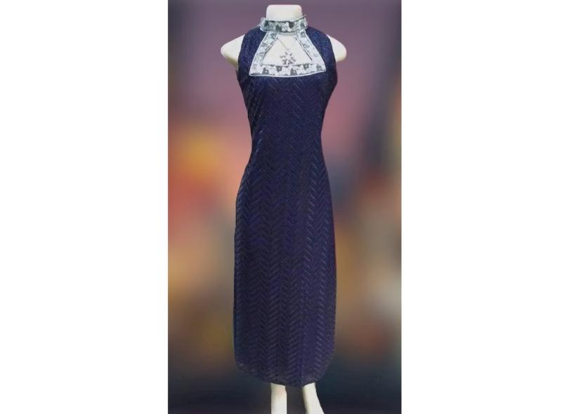 Vestido Longo De Festa Indiano, Em Veludo Bordado, Roxo