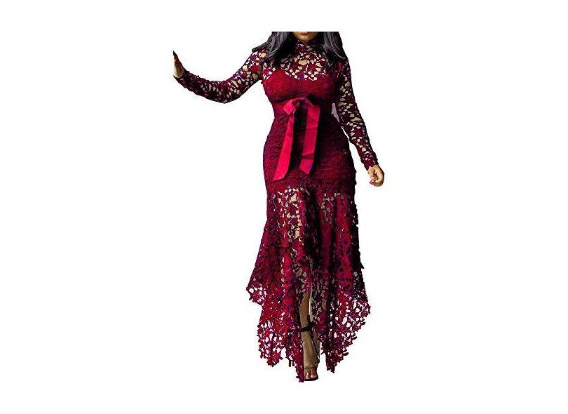 Vestido longo de renda Verwin com cadarço, assimétrico, vestido longo sexy de festa, , Medium