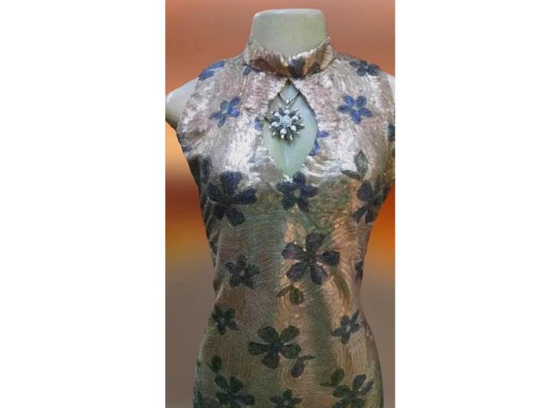 Vestido Longo Festa Indiano, Em Tule Bordado Com Paetê,