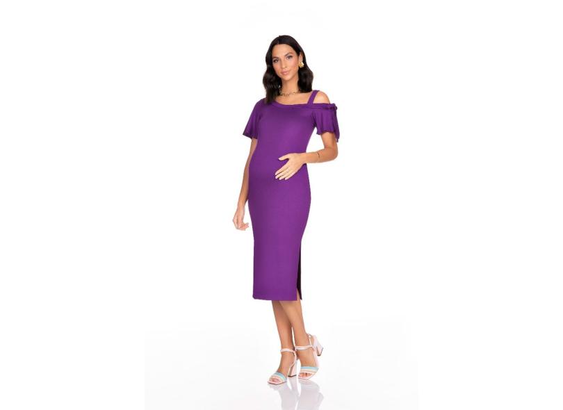 Vestido Megadose Moda Gestante Midi Roxo
