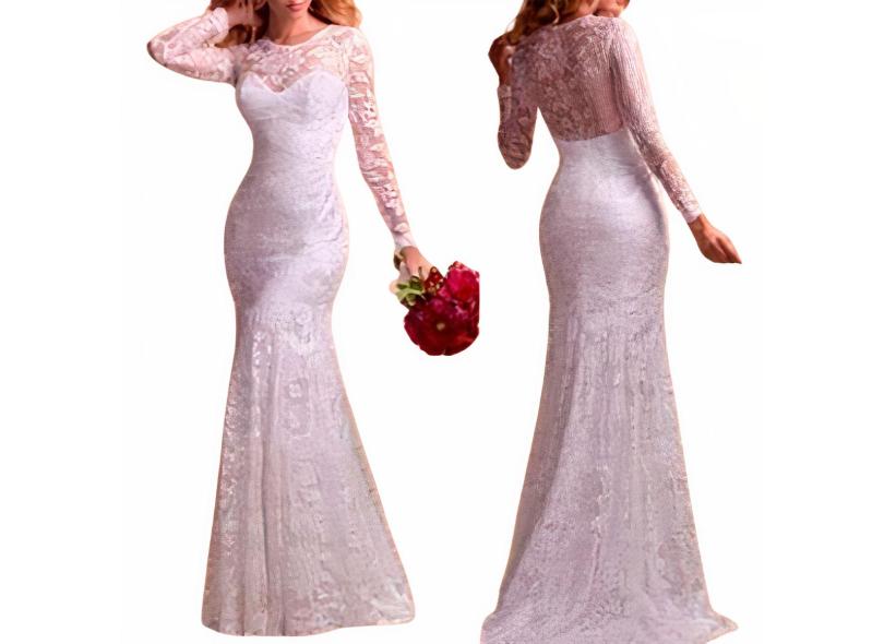 Vestido Noiva Renda Maga Longa Moderno E Simples