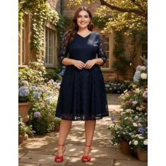 Vestido Plus Size Renda Batizado Festa Madrinha Civil Noite - Bella Fe