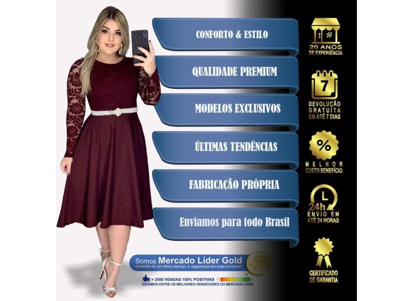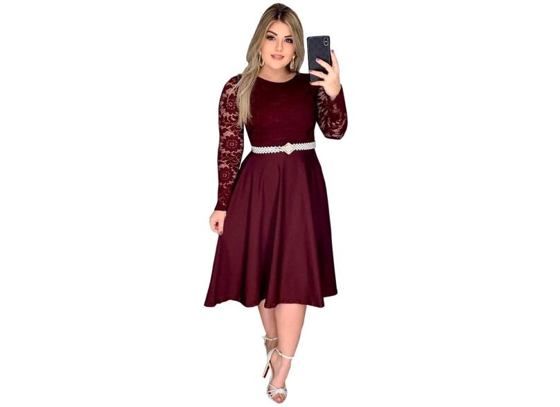 Vestido Renda Manga Longa Midi Gode Evangélico Vinho