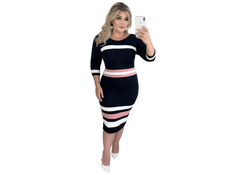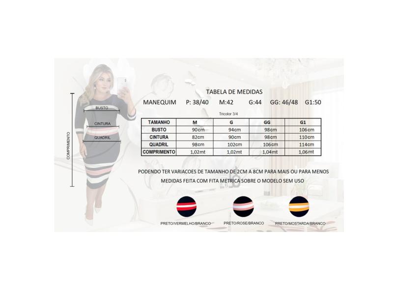 Vestido Tubinho Mídi Moda Evangélica Tricolor 34 Rose