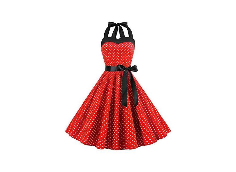 Vestidos femininos vintage anos 50 sem alças vestido rodado retrô frente única de bolinhas vestido longo de casamento, , Large