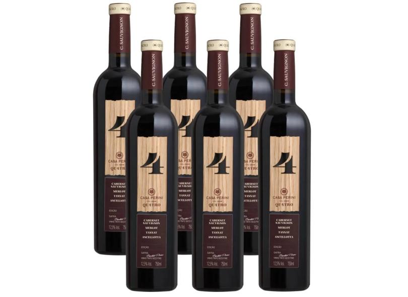 Kit 06 Unid. Vinho Casa Perini 4 Quatro 750ml Caixa Madeira