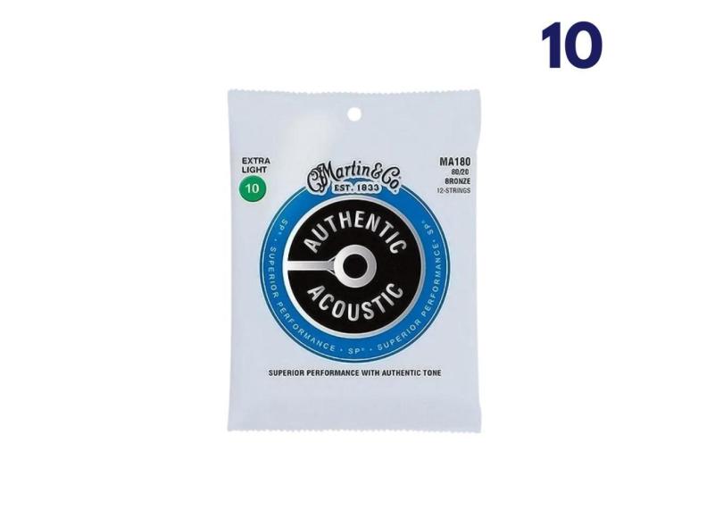 10 pctes cordas violão 010 aço bronze 80/20 extra light martin MA180