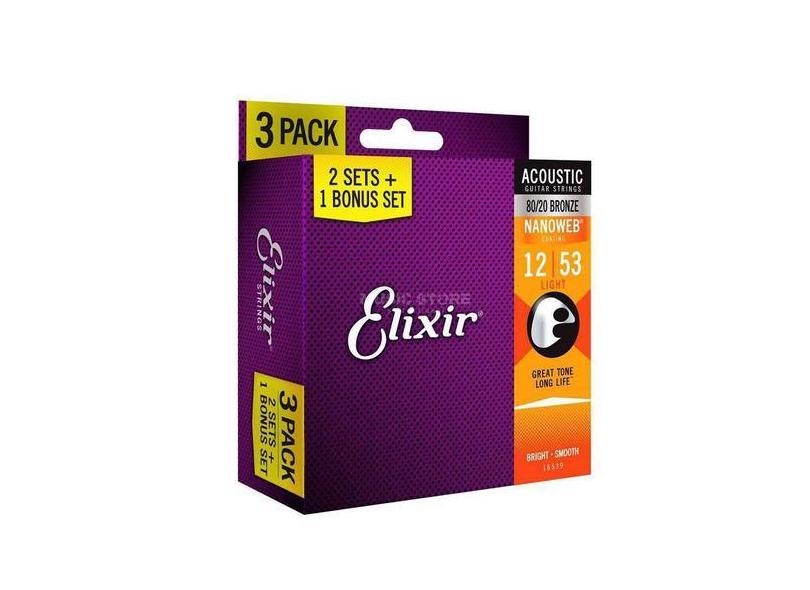 Kit Corda Violão Aço Elixir 012 053 80/20 Leve 3 Pague 2
