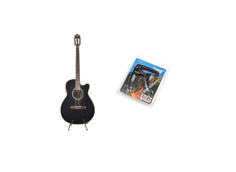 Kit Violão Land Eletrico Nylon Preto Lw-N-40E Capotraste