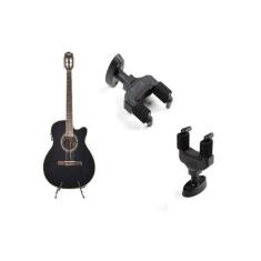 Kit violão land eletrico nylon preto suporte de parede