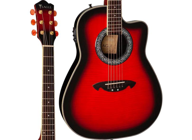 Violão Elétrico Folk Eagle CH306 Aço Red Burst Cutway