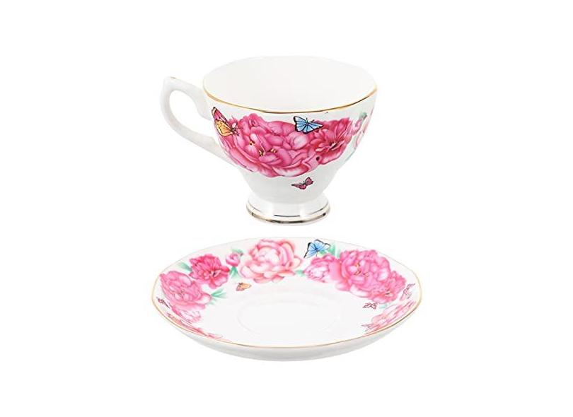 FRCOLOR Pires de Café Copo Osso China Xícaras de Chá Xícara E Pires de Porcelana Com Padrão de Flor Máquina de Lavar Louça Segura