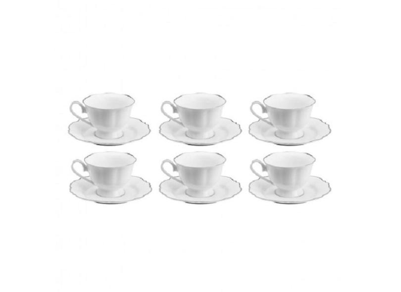 Jogo 6 Xícaras Café Porcelana Com Pires Maldivas Com Fio Prateado Wolff