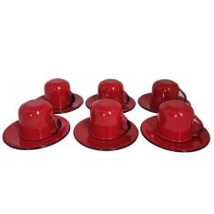 Jogo De Xícaras Com Pires 6 Canecas Esmaltada 180Ml Chá Café Laranja